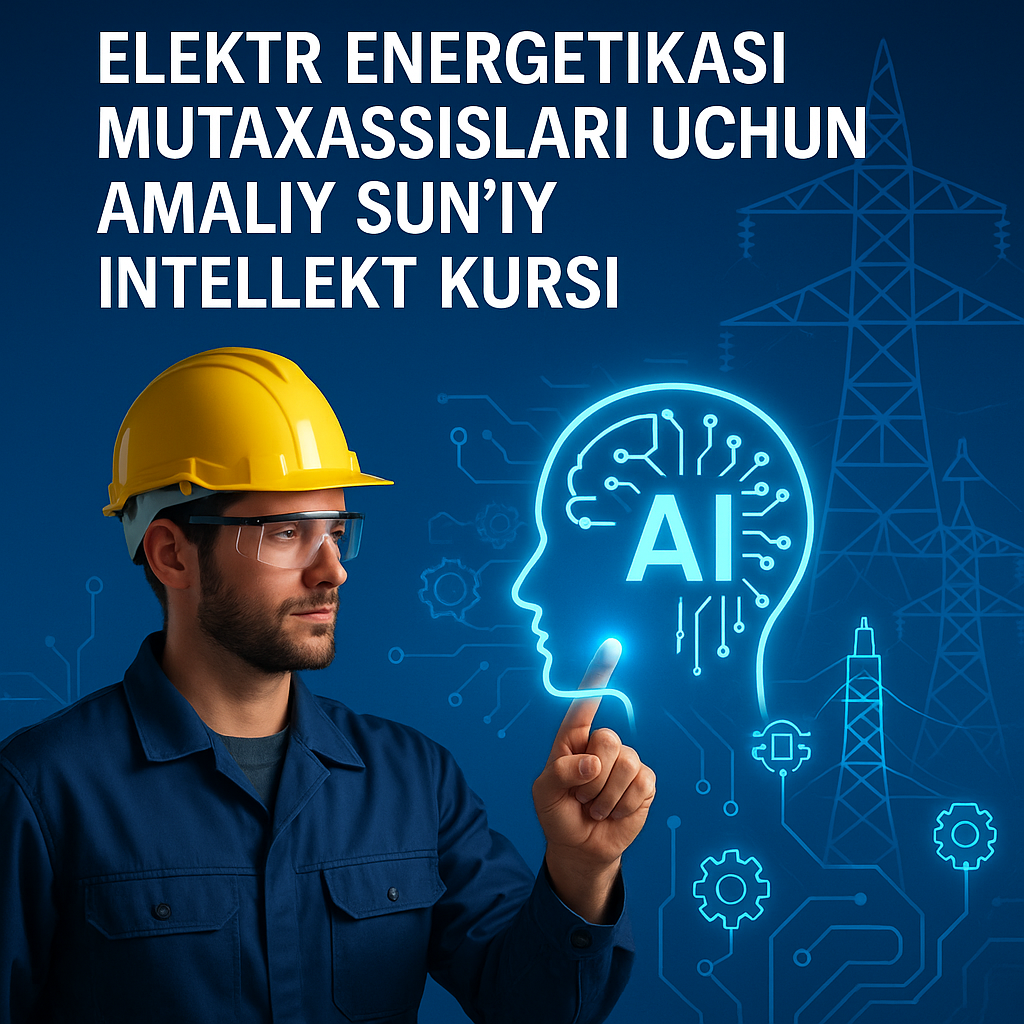 Ushbu 24 soatlik amaliy kurs elektr energetikasi sohasida faoliyat yurituvchi mutaxassislar uchun mo‘ljallangan bo‘lib, sun’iy intellekt (AI) texnologiyalarini ishlab chiqarish, texnik xizmat ko‘rsatish va energiya samaradorligini oshirish jarayonlariga tatbiq etish ko‘nikmalarini beradi.